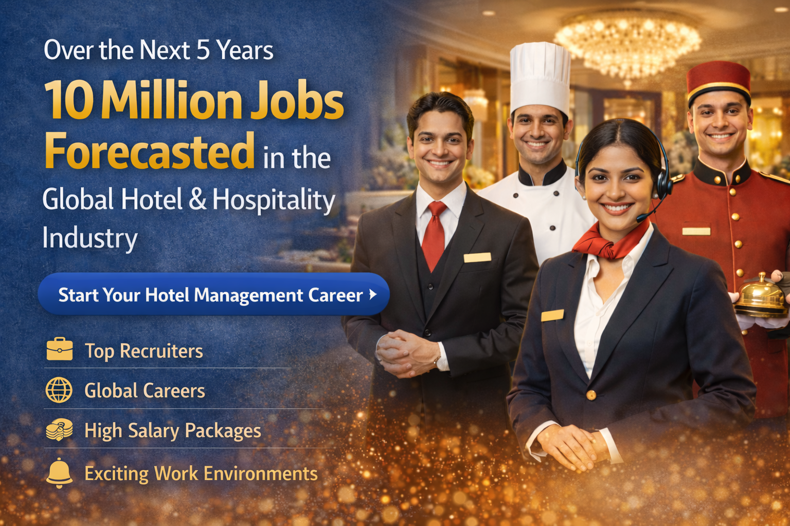 The global hotel and hospitality industry is witnessing an unprecedented hiring boom, with millions of job openings projected over the next few years. As international travel, tourism, luxury hotels,...